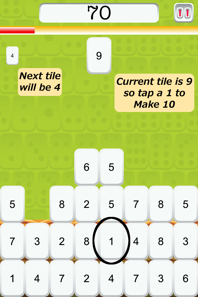 Your goal is to Make 10 as fast and often as you can by tapping the tile that adds up to 10 before the wall of tiles reaches the top.