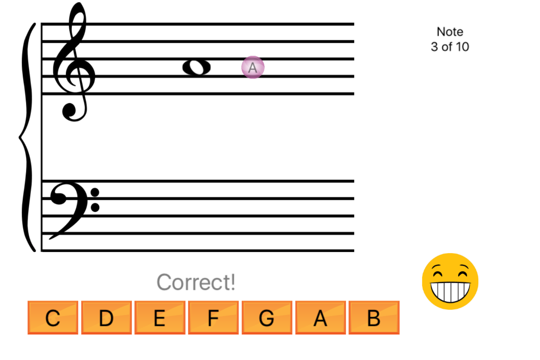 Note recognition is an important skill for students of many musical instruments or voice. This game makes note identification practice more fun with simple, engaging play.
